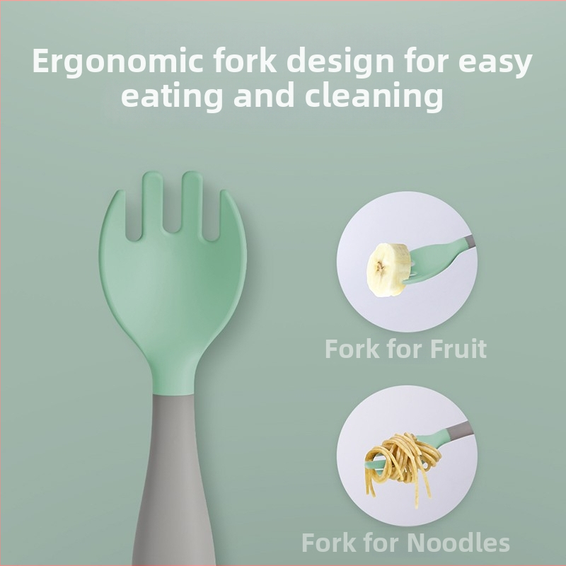 Бебешки прибори за хранене: набор лъжица и вилица, 2 части, PP материал, за деца над 6 месеца, гъвкав дизайн на ъгъла