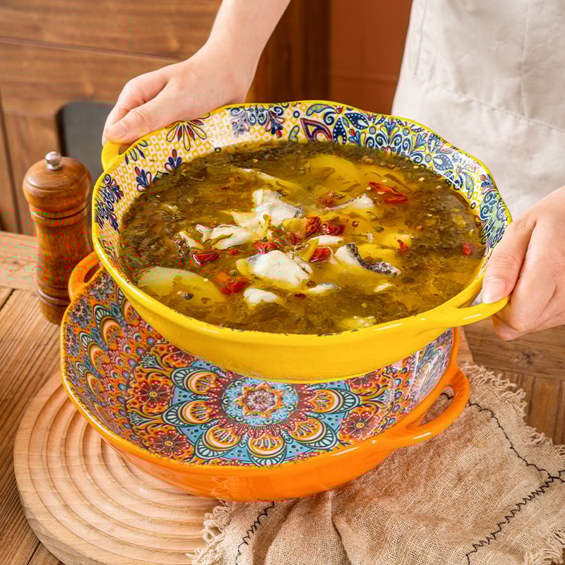 Badu.bg не носи отговорност при покупка на Голяма купа за бохемска маринована риба, домакинска голяма купа за двойна уха, купа за супа, специална купа за резени варено месо от Комплекти чинии и купи извън формата за поръчка.
