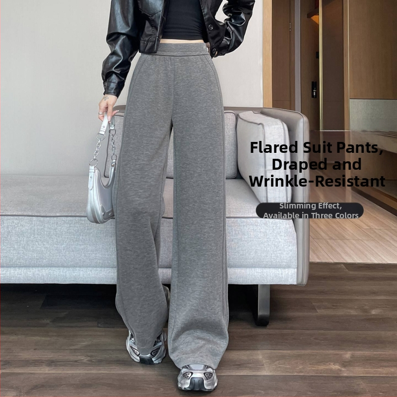 Дамски спортни панталони с микро флер, широки крачоли, еластична талия, полиестер/модал смес, есен 2025