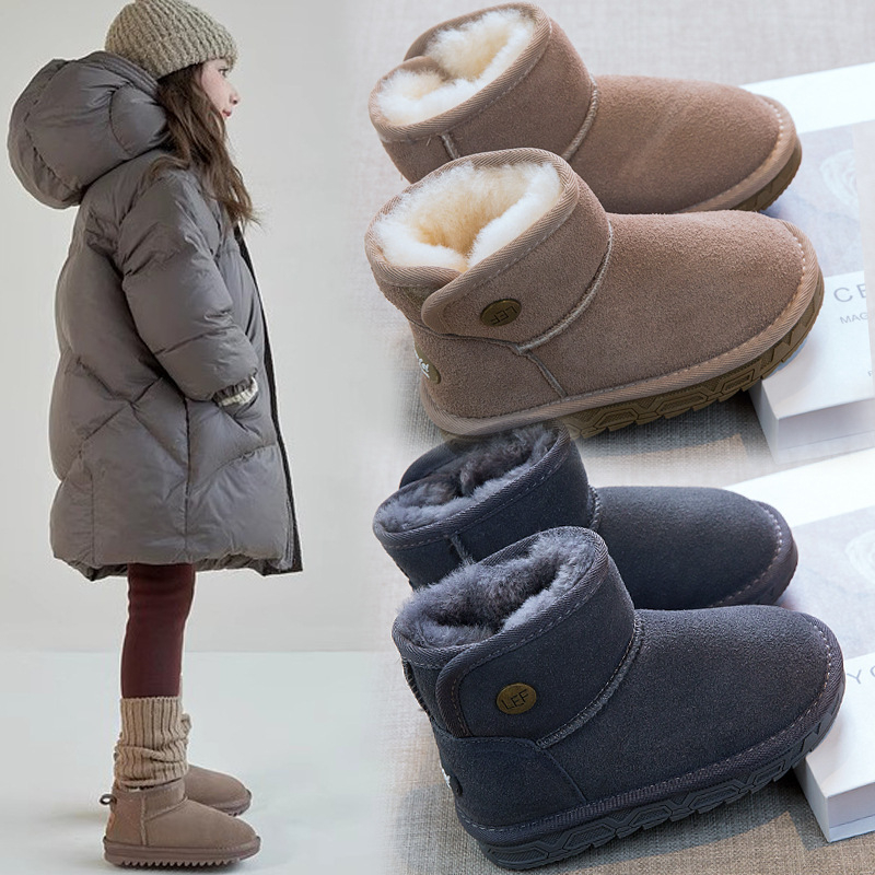 Детски зимни обувки за сняг от овча кожа, едно парче, водоустойчиви, противохлъзгащи, с удебелена памучна подплата, ежедневен стил, за деца 7–16 години