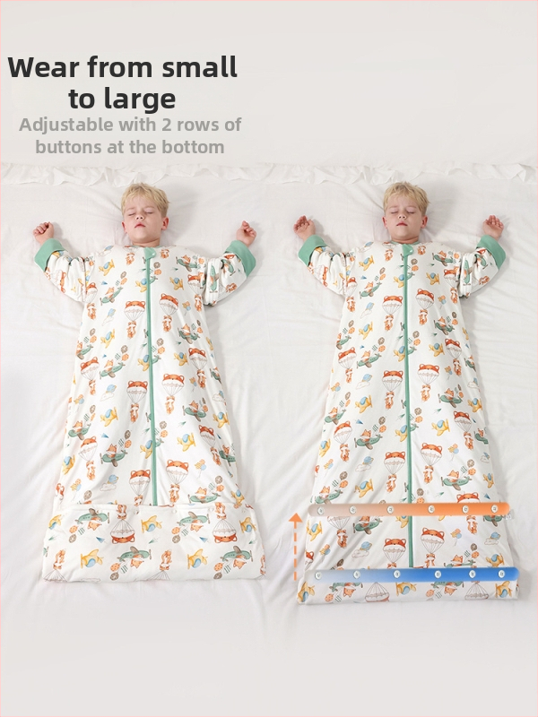 Детски спален чувал, плат 50% памук / 50% рецикларни бамбукови влакна, дължина 80 см, със сваляеми ръкави, подходящ за пране