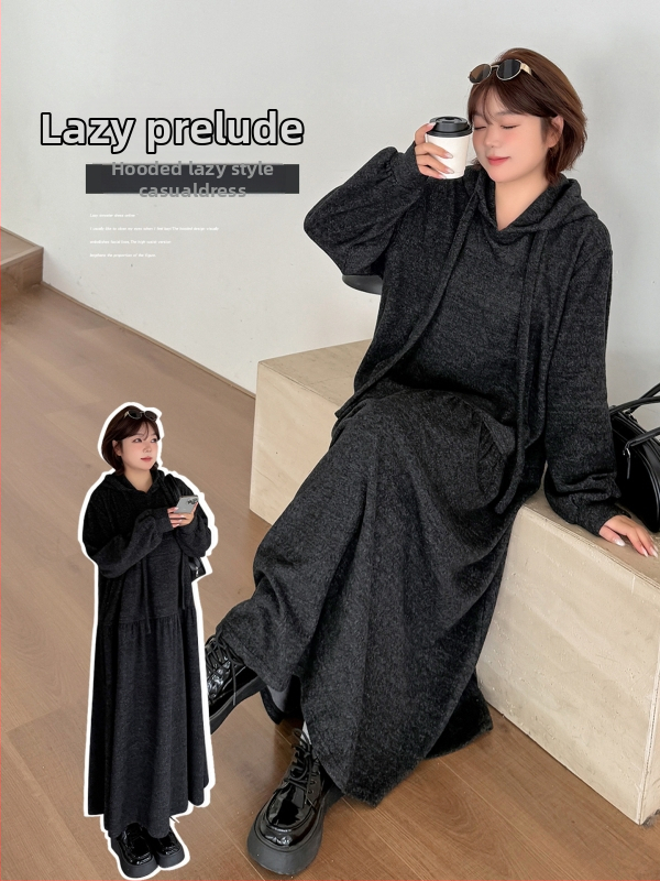 Дълга дамска кадифена рокля с качулка — А-линия, полиестер-вискоза смес, дълги ръкави, есенно-зимна
