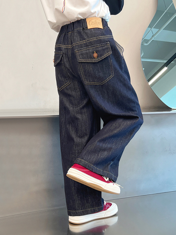 Дънки за момичета с прав крак — 54.6% памук, средна талия с ластик, едноцветни, за пролет и есен