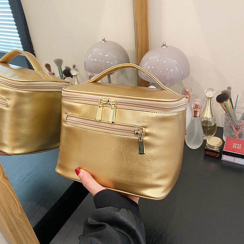 Козметична чанта от PU кожа, водоустойчива, многофункционална за пътуване с голям капацитет, подплата полиестер, за домашно съхранение