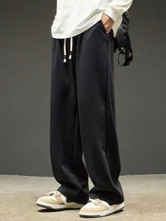 Мъжки спортни панталони с прави крака, подплатени с флис, средна талия, връзка отпред, зима, полиестер
