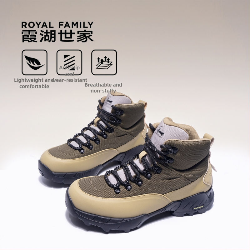 Мъжки туристически високи ботуши — дишаща синтетична кожа, антихлъзгащи, PU стелка, 3-5 см ток, есенно-зимна колекция 2025