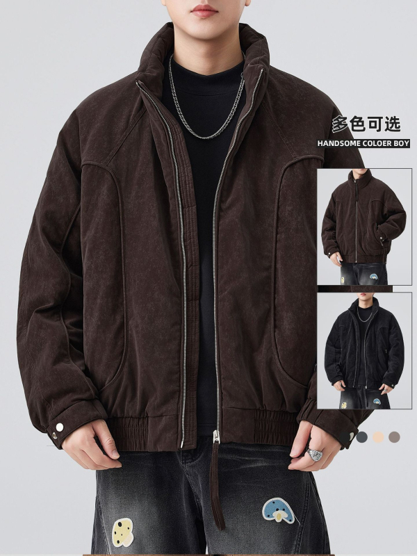 Мъжко пухено зимно яке, патешки пух 91-95%, ветроустойчиво, средна дължина, свободна кройка, стояща яка, цип, без качулка