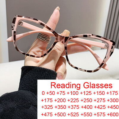 Нова модна марка Дизайнерски очила за четене с котешко око Женски тренд Розови леопардови очила за компютър против синя светлина Focus Plus 0~+6.0