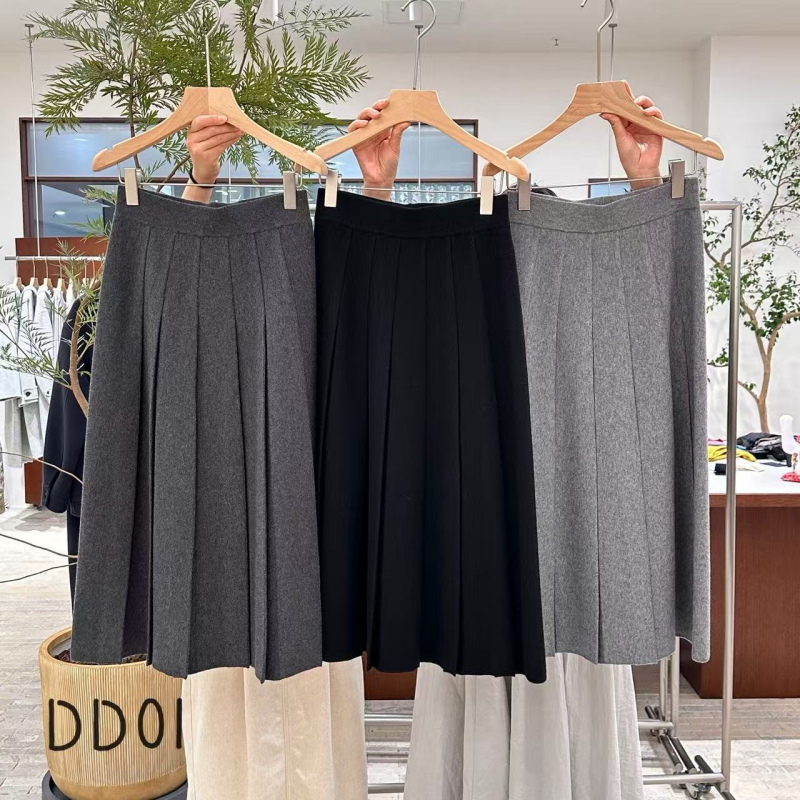 Плисирана пола от вискоза, миди дължина, леко разтягане, 2025 есен