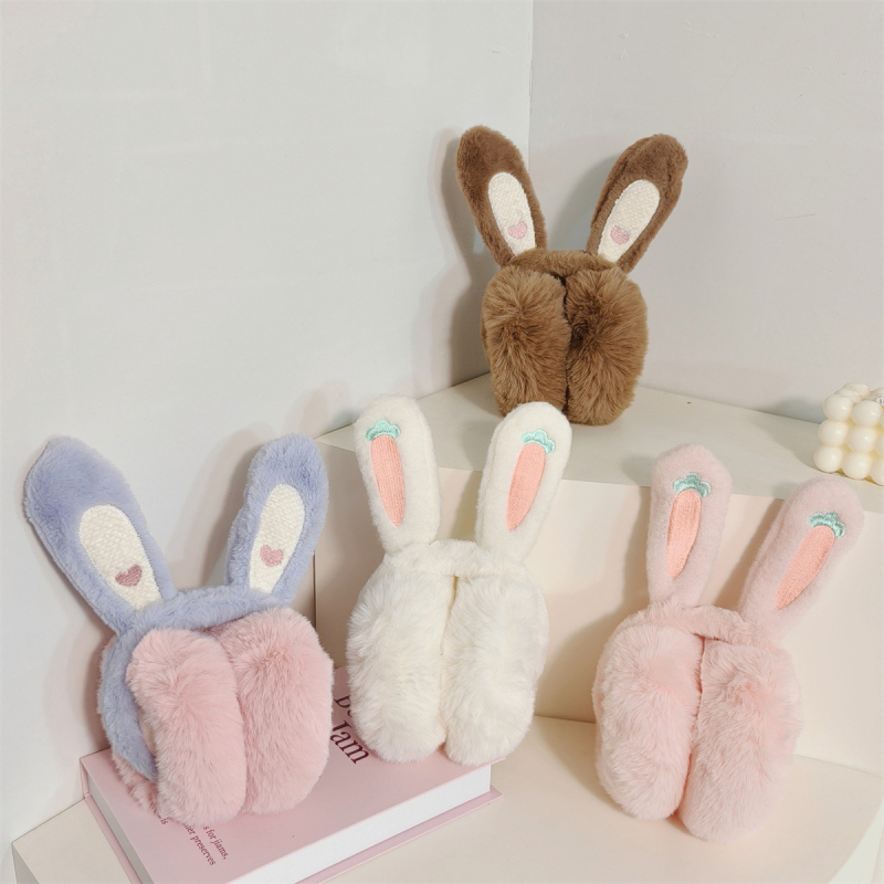 Плюшени сгъваеми антифони за уши с моркови и заешки уши, зимни, студоустойчиви, топли, за уши, топла чантичка за уши