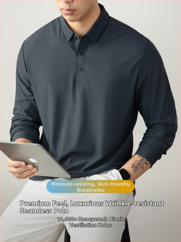 Поло риза с дълъг ръкав (прилепнала кройка; 85% найлон, 15% спандекс; дишаща; без намачкване; бързосъхнеща)