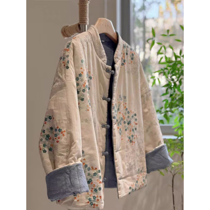 Реверсивно памучно палто със стояща jaka, пълнеж полиестер-памук, подкладка памук-лен, женски уличен стил