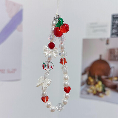 Сладка череша, ягода, панделка, верижка за телефон, ремък за талисман, каишка за китка, мънисто, висящ кабел, гривна, ключодържател за iPhone, момиче, въже