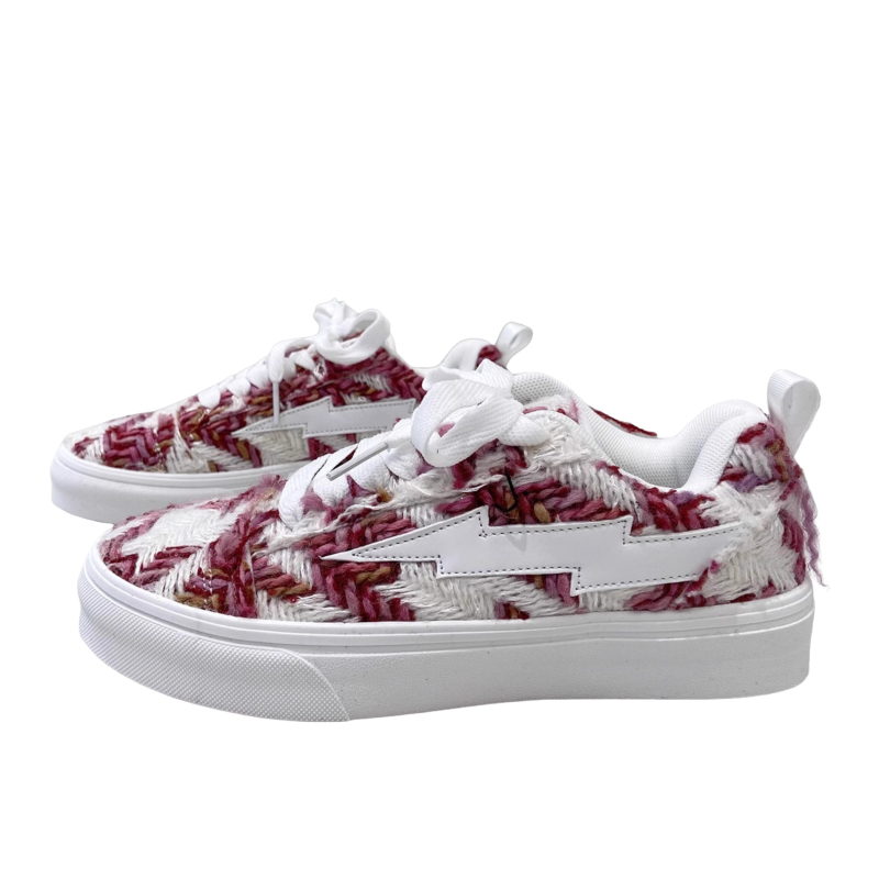 Спортни ежедневни обувки за жени - горна част от плат с цветни блокове, закрълен нос, нисък ток 1–3 см, връзки, подметка TPU