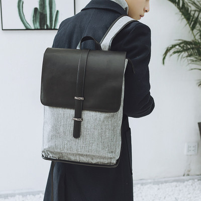 Стилна мъжка раница в сив цвят с черни кожени елементи