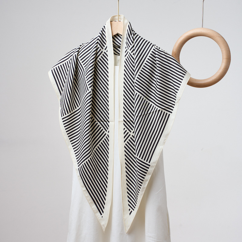 Триъгълен шал със колан от изкуствена коприна, 100% полиестер твил, принт с прави линии, универсален дамски аксесоар