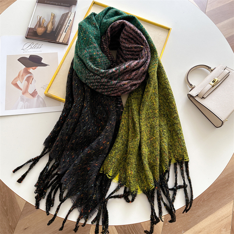 Удължен шал с градиентен зиг-заг модел, имитация на кашмир, топъл и стилен за зимния сезон