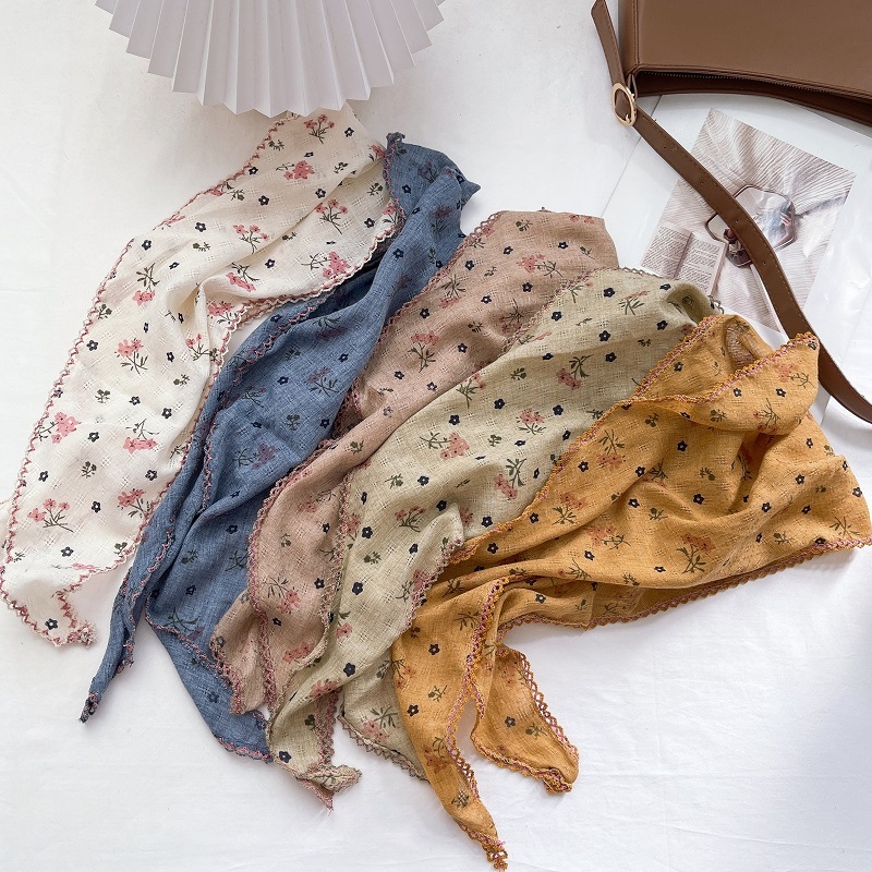 Шал за врата с японски флорален мотив, памучна жакардова тъкан, warp-knit за лято
