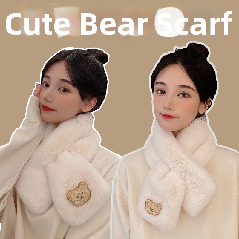 Шал от изкуствена зайче козина, с дизайн плюшено мече, топъл за зимата