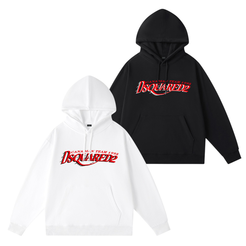 DSQ2 Памучен суитшърт с качулка (100% памук; дълъг ръкав; принт с букви; свободна кройка; за пролет и есен)