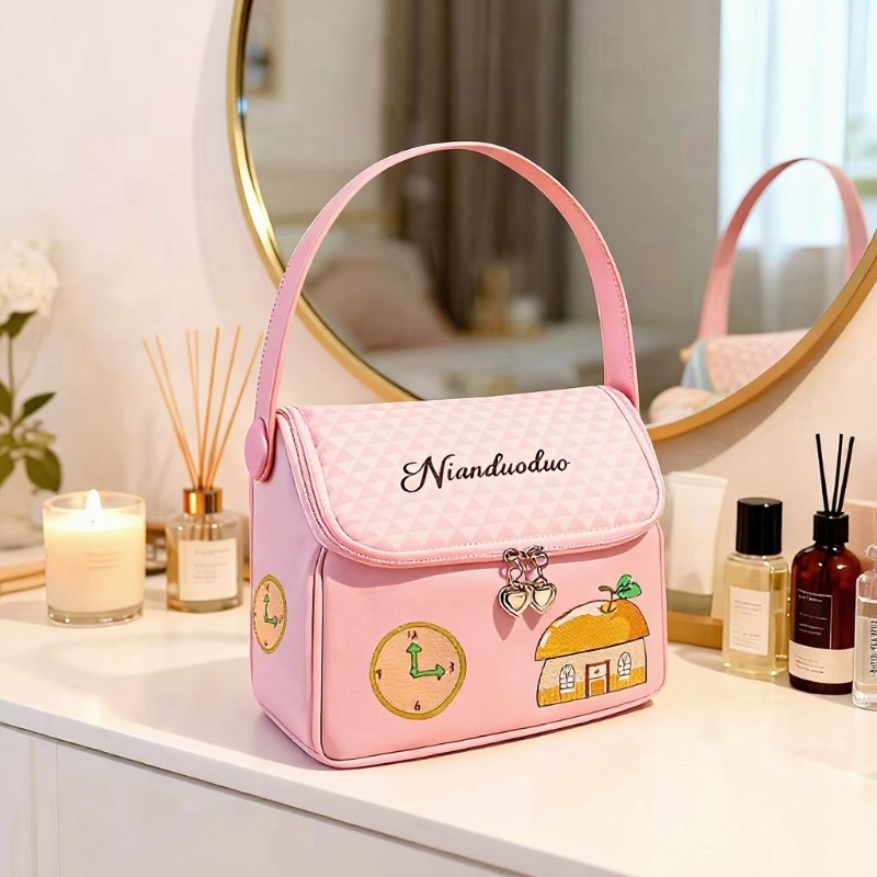 PU козметична чанта с принт, голям капацитет за пътуване и общежитие, цип за затваряне, полиестерна подплата, водоустойчива функция