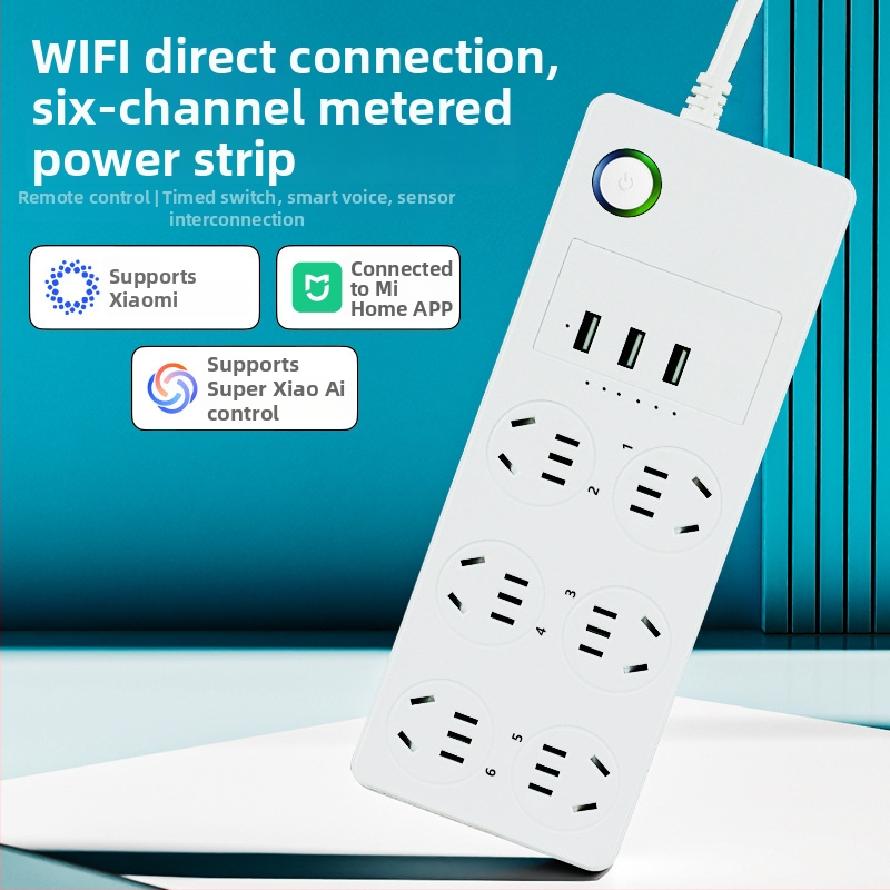 WiFi умна разклонителна лента с медни проводници, PP+PC корпус; 10A, 100-250V, 2500W, 3C сертификация